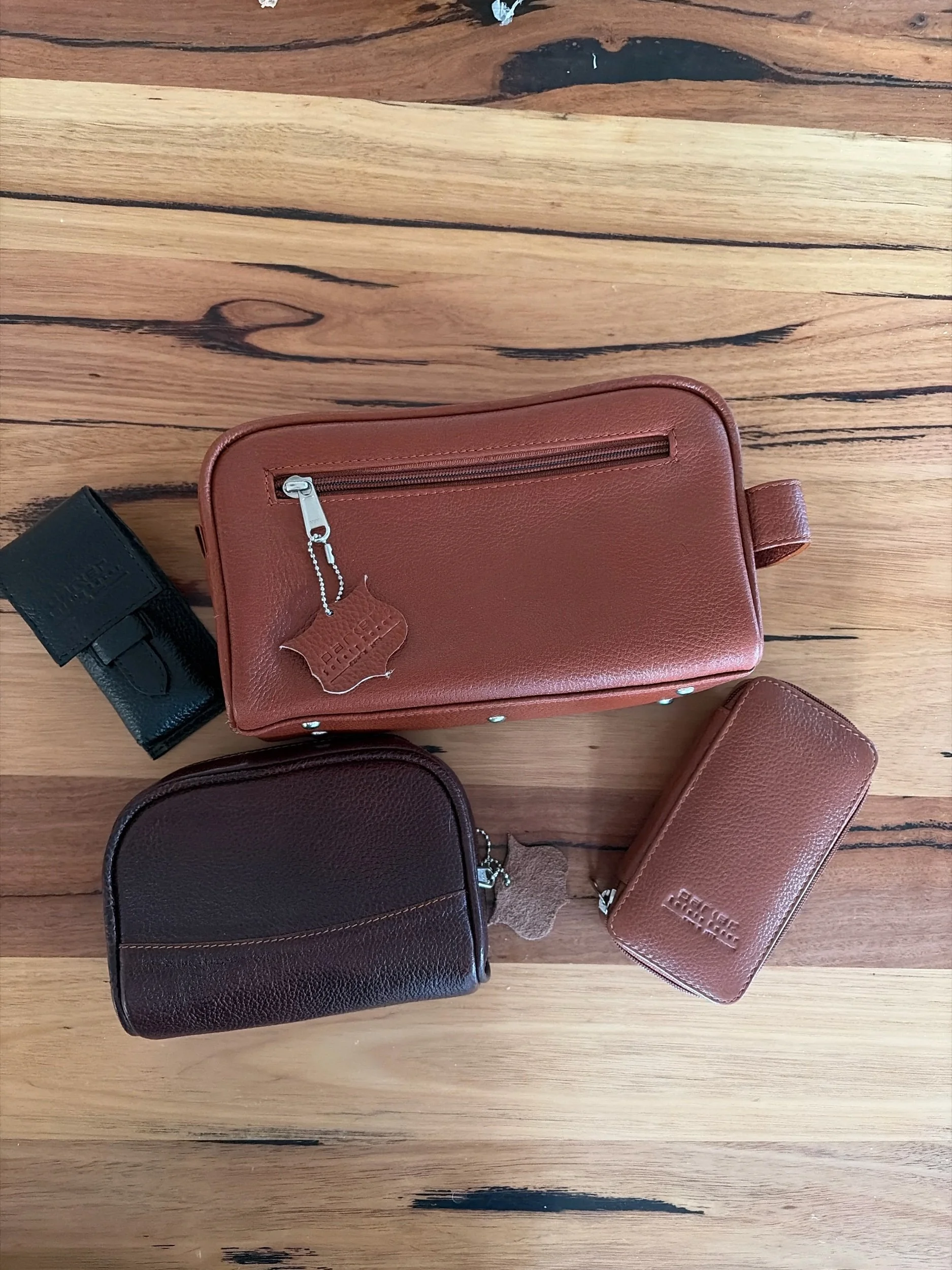 Bathroom › Toiletry Bags - Various Image 1 of 5 Image 2 of 5 Image 3 of 5 Image 4 of 5 Image 5 of 5 Toiletry Bags - Various from $40.00 Type: Select Type Large Light Brown Small Dark Brown Shaving Brush Case Shave Case Add To Cart Added!