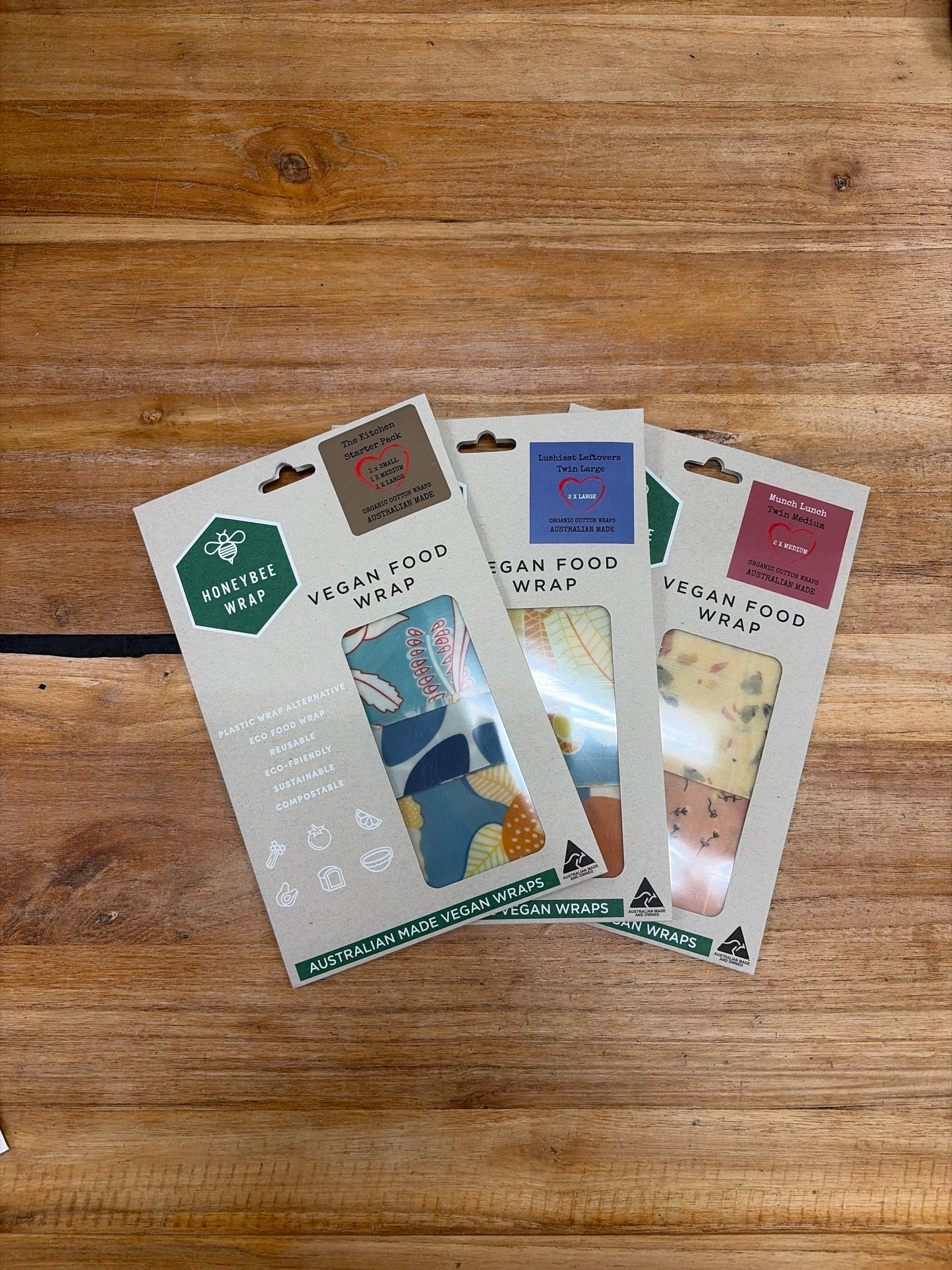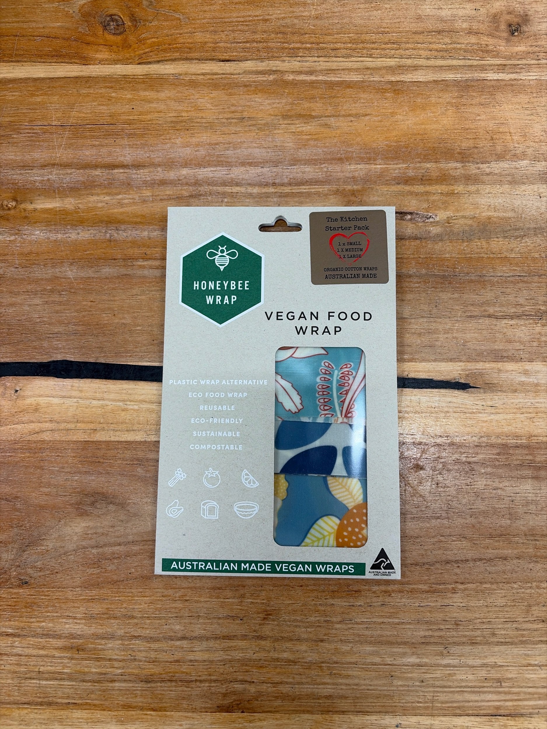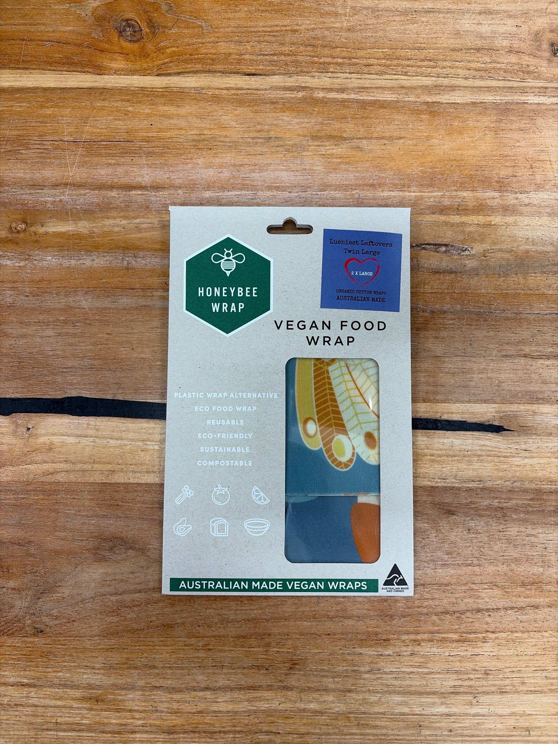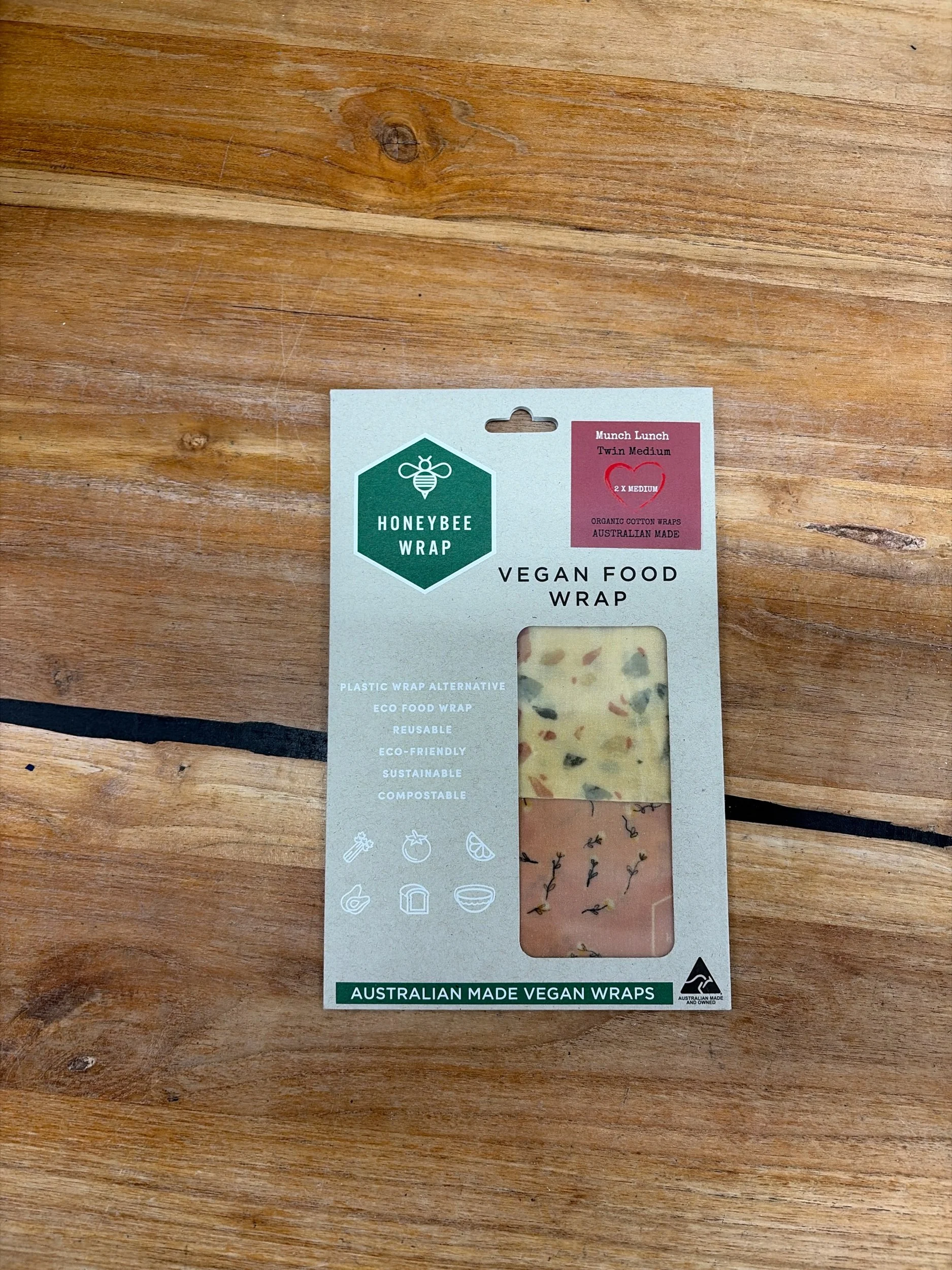 Ingredients: All Honeybee Vegan food wraps are made with 100% GOTs Certified organic cotton infused with a special blend of Candelilla Wax, soy wax, certified organic coconut oil, certified jojoba oil and natural tree gum products which have antibacterial properties