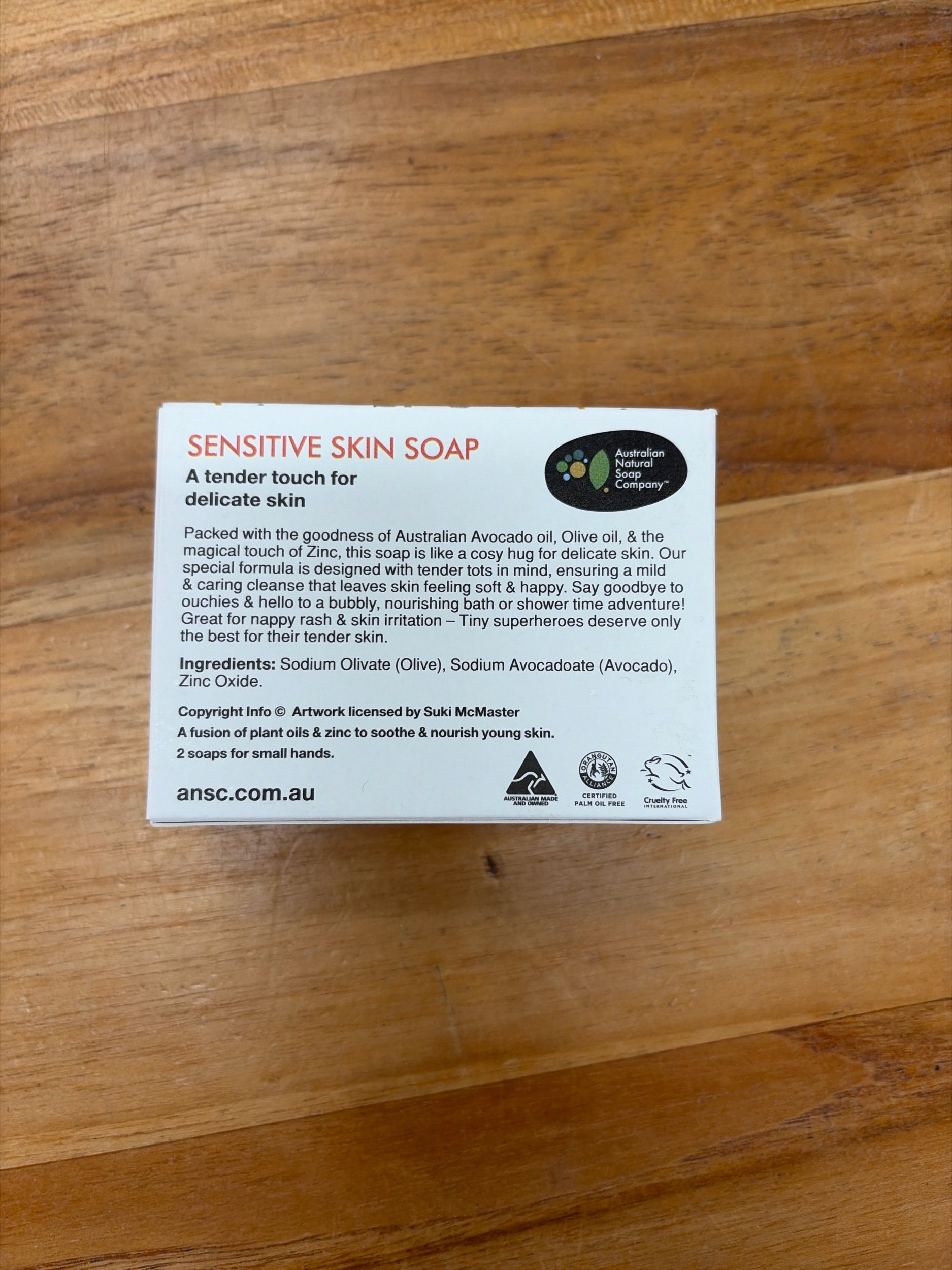 Ingredients: - Sodium Olivate, Australian Avocado Oil, Olive Oil, Zinc Oxide